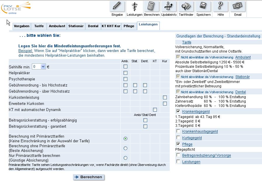 Umfang gewünschter Zahnleistungen mind. 90% Erstattung für Zahnbehandlung bzw. 75% für Zahnersatz