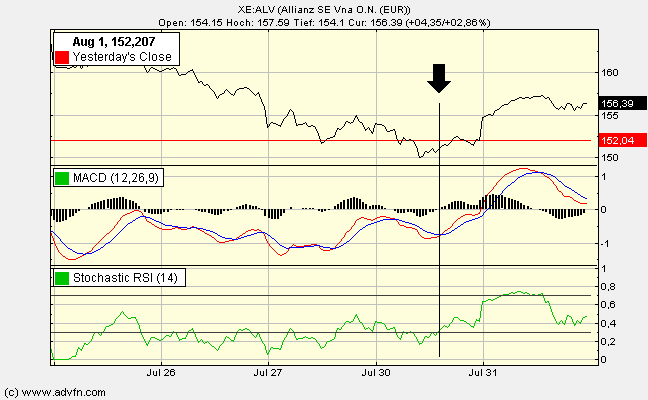 *Die Analysten der HypoVereinsbank bekräftigen ihr "buy"-Rating für die Allianz-Aktie und erhöhen das Kursziel von 195,00 Euro auf 210,00 Euro. (Analyse vom 27.07.2007)*