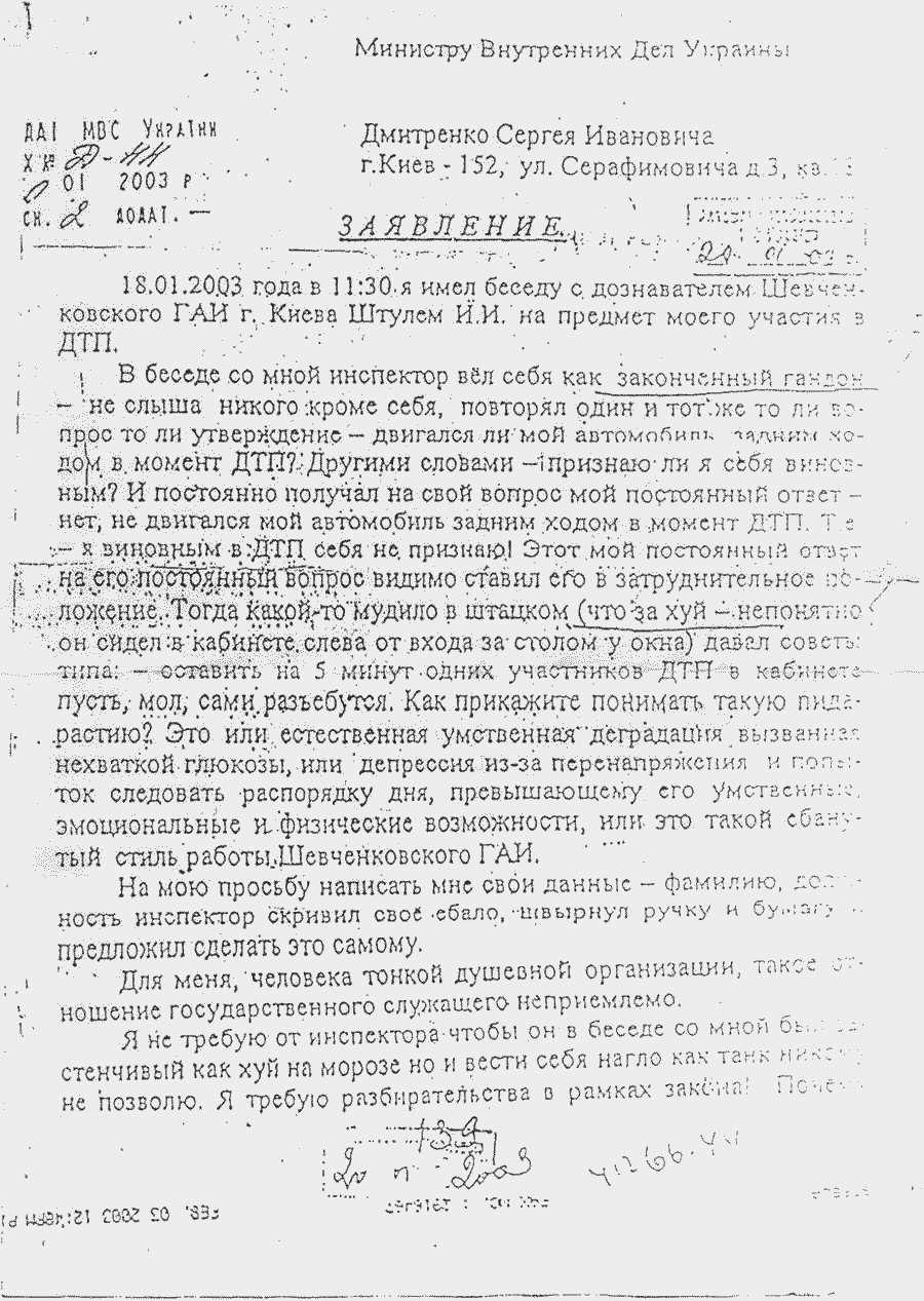 Наверное, ещё смешнее, что этому человеку с тонкой душевной орагнизацией ответили нежные и пушистые работники милиции.