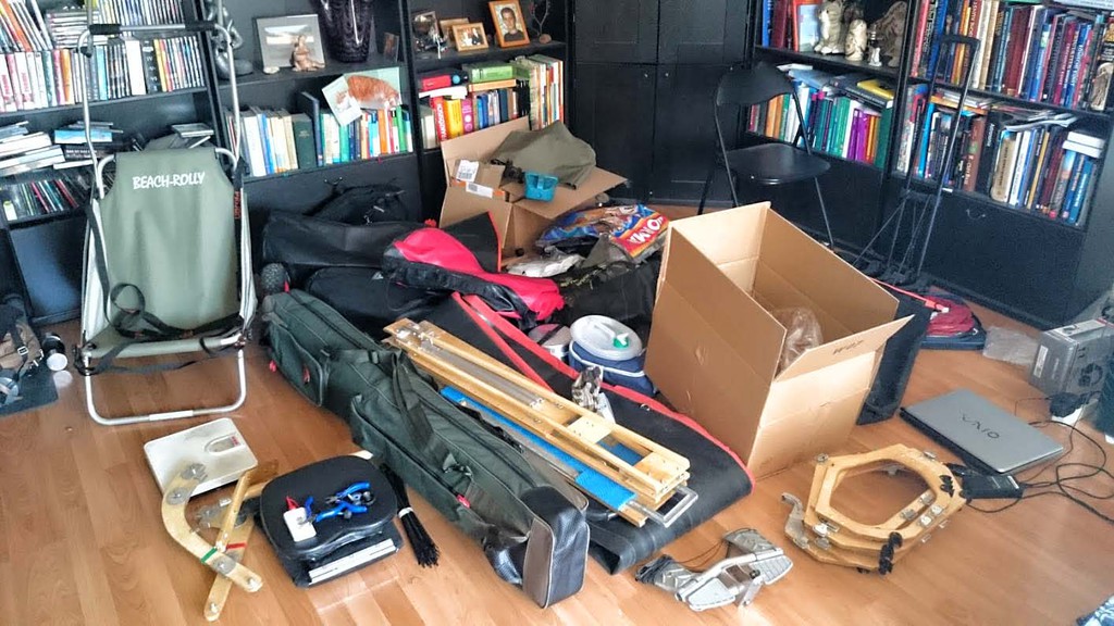 Это точно - сборы - уже начало путешествия. У меня сборы (ну кроме поездок "all inclusive") начинаются с того, что сидя на работе я в паузах начинаю составлять GPS-маршрут поездки, расписывать план, готовить чек-лист. Затем уже на втором этапе натаскиваю из подвала кучу типа той, что на первом снимке и начинаю сортировку. Одновременно чего-то подзакупаю, так что почти ежедневно приходят новые коробки, что тоже видно на снимке.