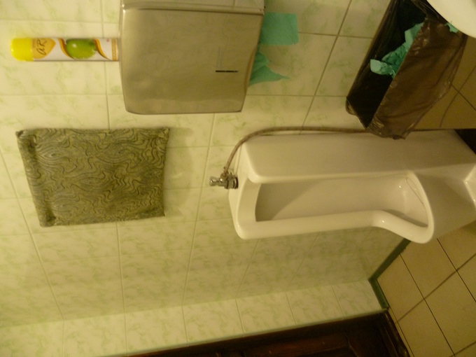 а я как-то была в Украине в одном ресторане- националъная кухня, два этажа, стилизовано в стиле гоголевских времен, а вот туалета всего два, на нижнем етаже- мужской и женский...в женский была очередъ человек 5, а в мужской никто не стоял, и когда открыласъ дверъ, оттуда вышел М, я быстренъко просколъзнула туда и заперла дверъ изнутри.) Осмотреласъ- там наряду с писуаром был и нормалъный унитаз! сделав свои нехитрые дела, пошла помытЪ руки и увиделa НЕЦХХТО, что меня совсем озадачило- над писсуаром была прибита мягкая подушка!