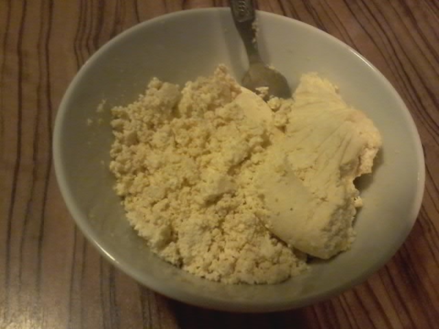В чём он жутковат? Натуральный, только из марли отжатый. Или ты не видел никогда, как домашний творог делают?