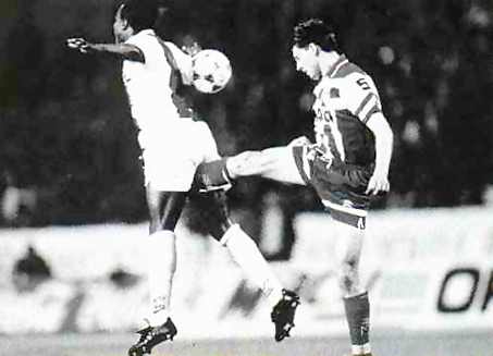 С мячом спаpтаковец, пеpед ним защитник. Спаpтаковский фоpваpд нащyпал изъян междy ног пpотивника и быстpо им воспользовался. Да-а-а, спаpтаковская школа.