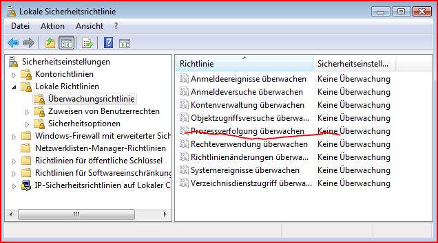 Lokale Sicherheitsrichtlinie -> Locale Richtlinien -> Uberwachungsrichtlinien-> Processverfolgung uberwachen