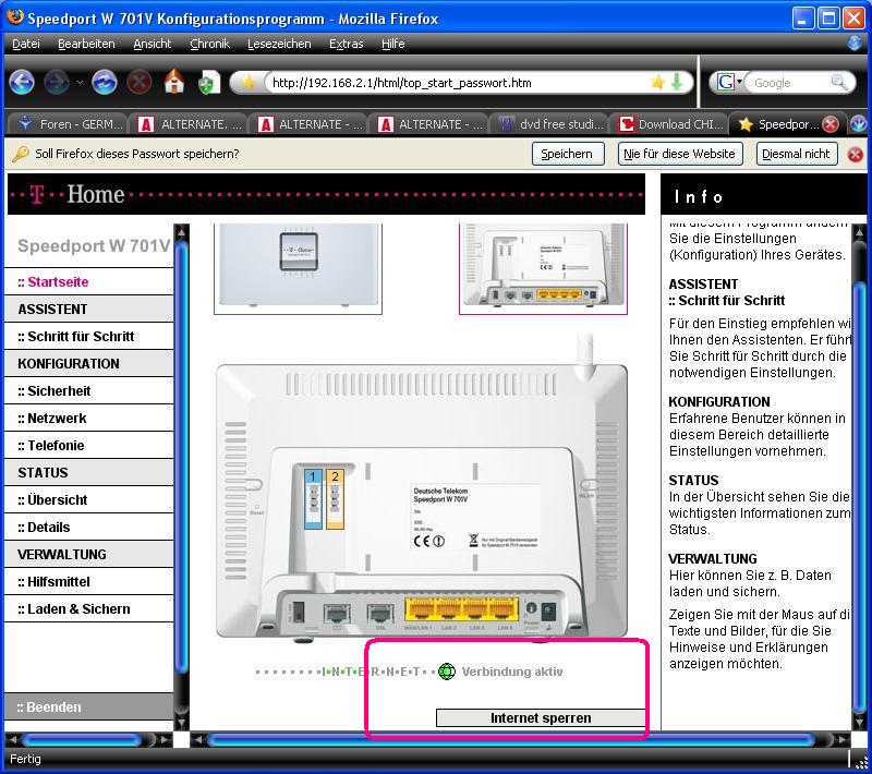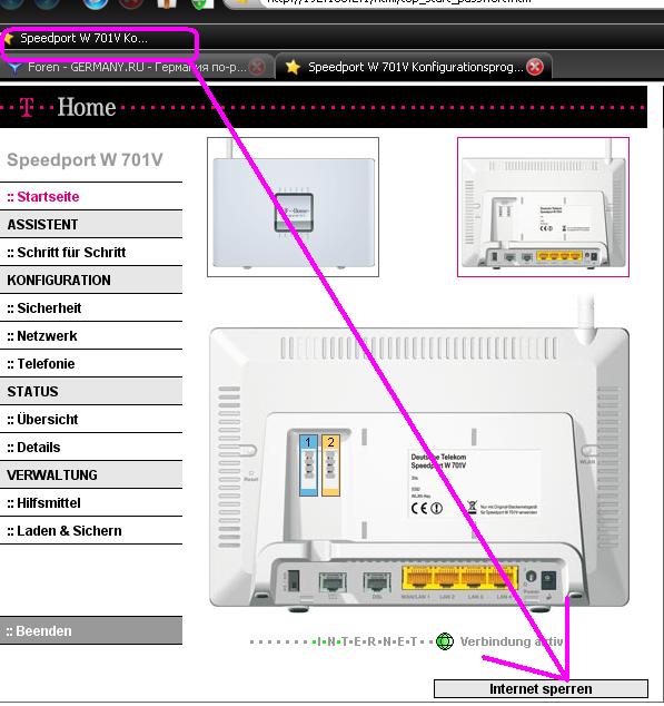 А здесь только включил комп ты уже там.Пробовал в настройках рутера на Verbindungsstatus потом на Verbindung trennen, но через 5 сек.он сам опять соединяется.Как мне настроить его, что бы он делал так как я хочю?