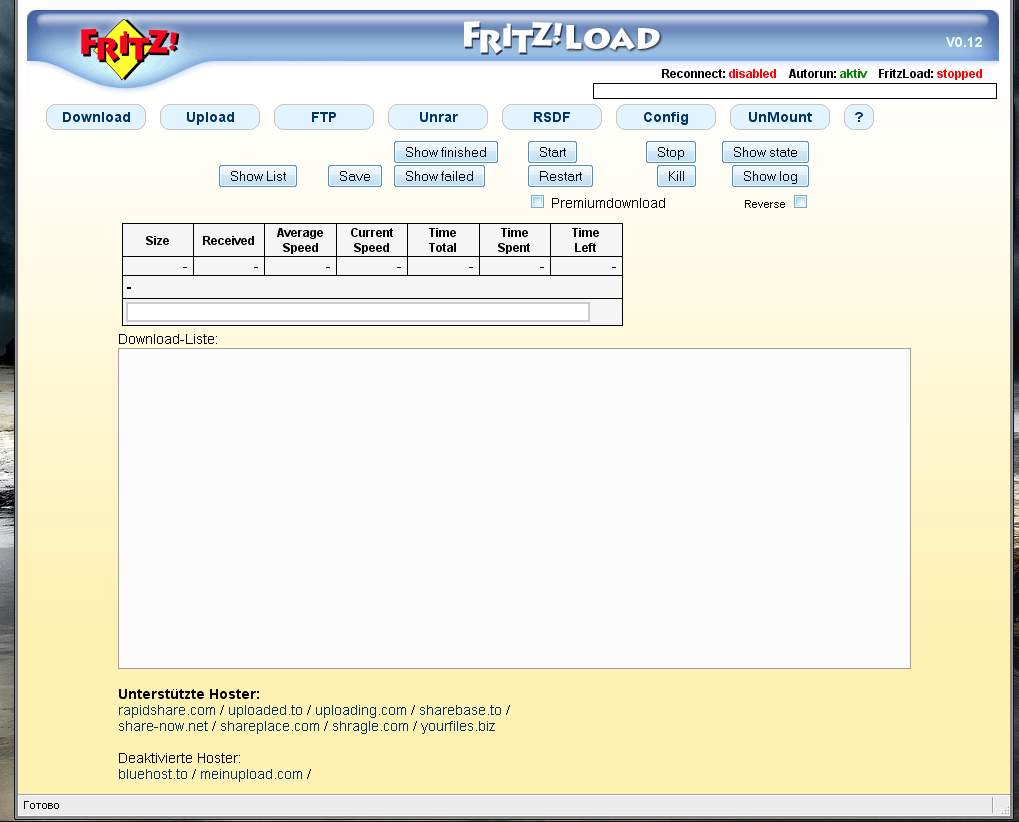 при запущенном Fritzload одним из последних процессов должен быть apache