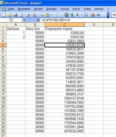 Zeitdauer Rate Zins angespartes Kapital