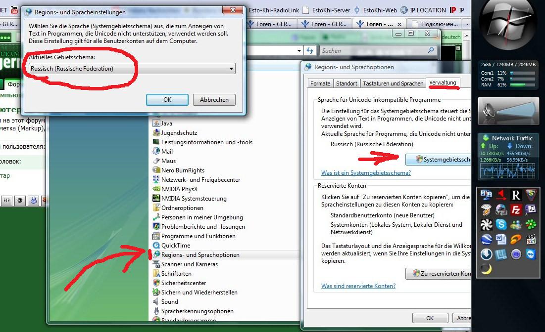 Здравствуйте! При скачивании некоторых русских программ и на некоторых русских сайтах мой нотбук (Windows XP) выдаёт вместо кириллицы разные иероглифы, знаки вопросов и прочую белиберду. Подскажите пожалуйста что делать?! Спасибо!!!