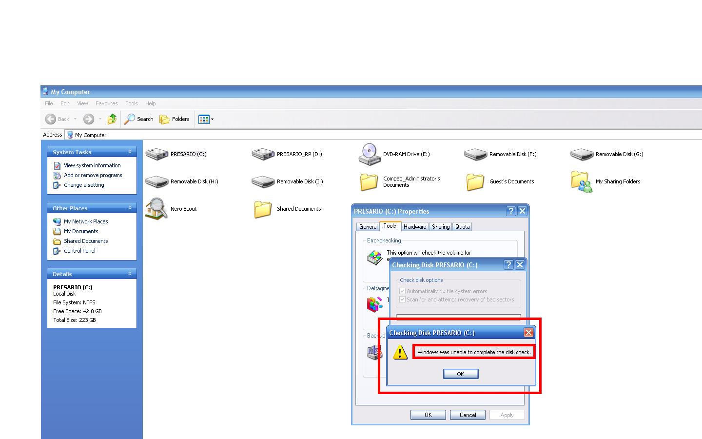честно говоря все было без проблем,в один день касперский перестал запускатся и где то меньше чеи через неделю попробовал на ошибки диск прогнать и безрезультатно виндовс ругается.В чем может быть проблема? Варианты решения?