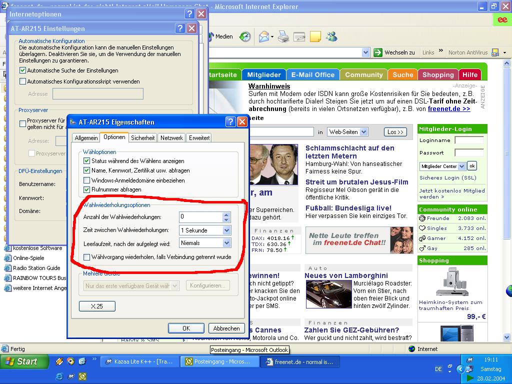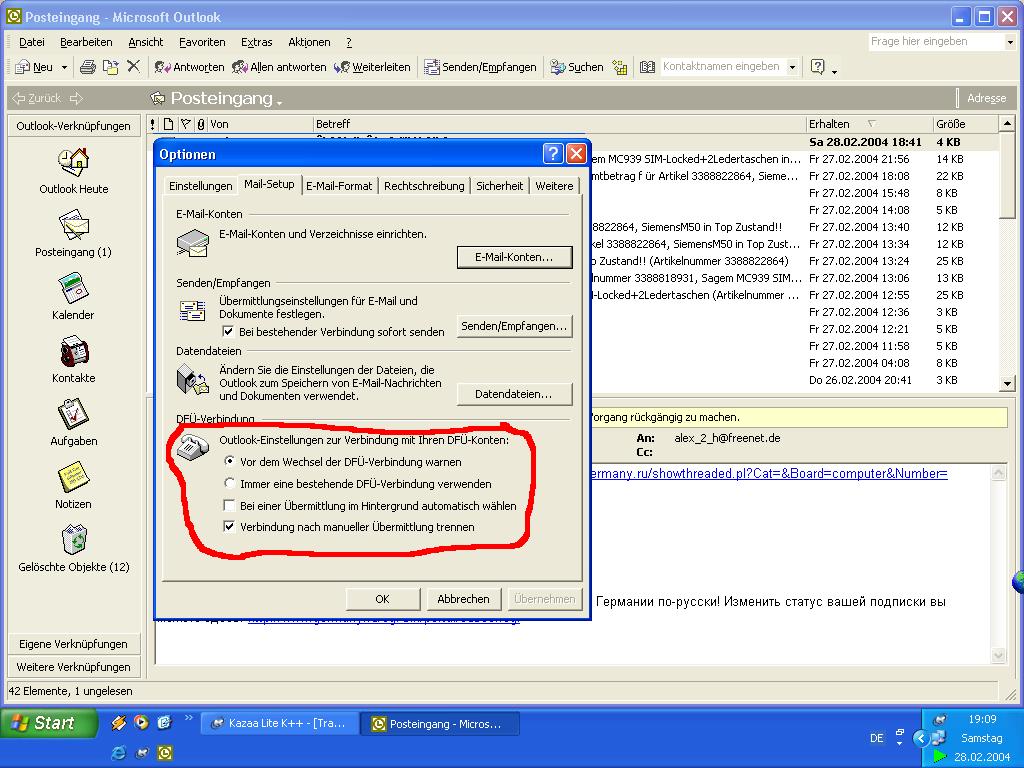 как в самом Outlook так и в IE и в актуальном DFÜ соединении.