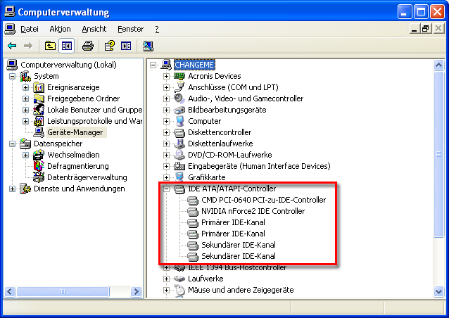 Единственно, не понятно, почему в Computerverwaltung -> Geräte-Manager стоит, что в ATA Channel 0 и ATA Channel 1, хотя диски все подлючены через IDE.