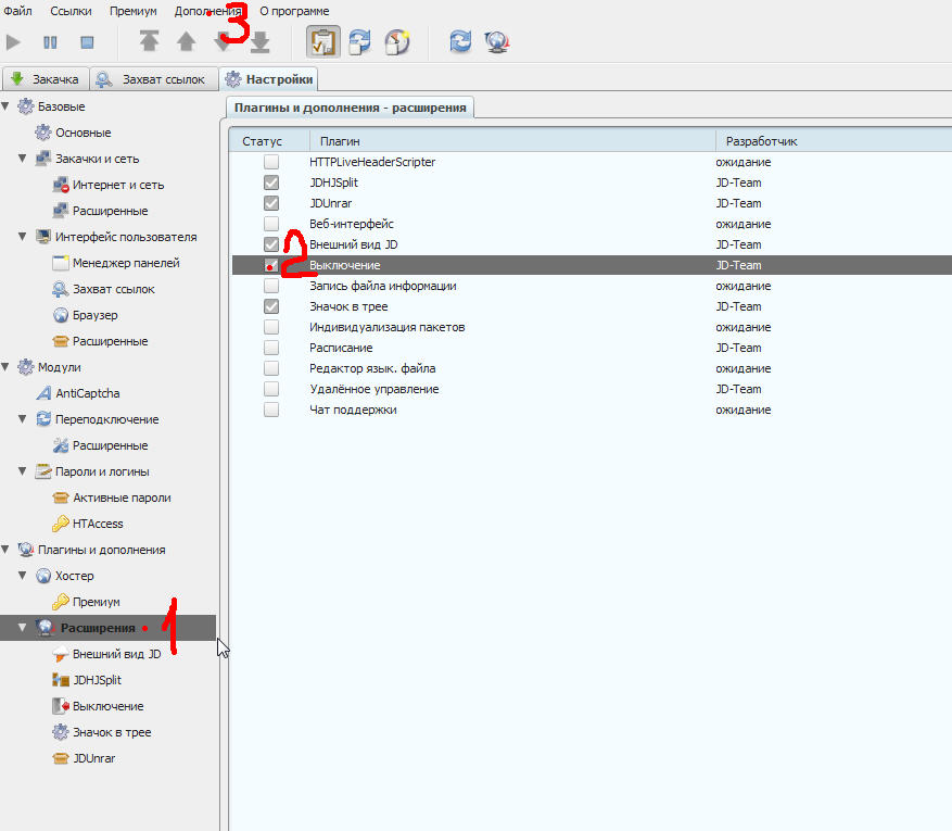 подскажите есть ли в этой качалке функция выключать комп после завершения всех закачек версия 0.9.580