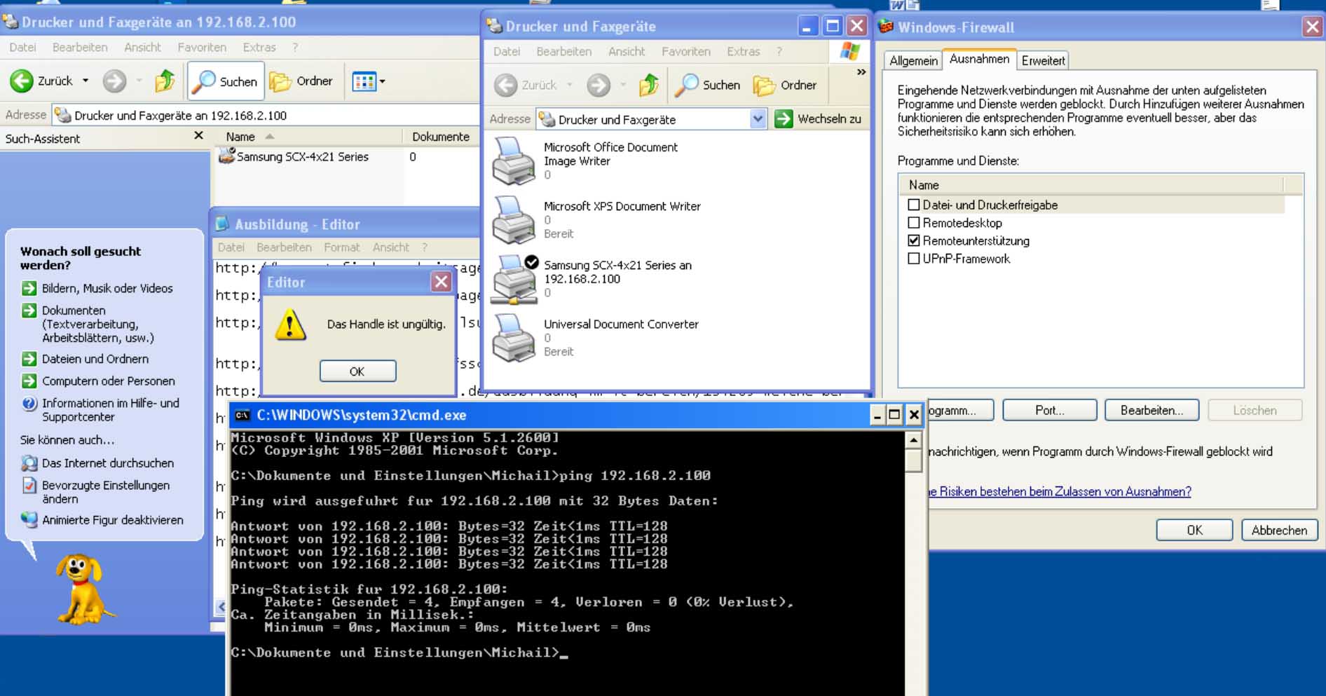 На первом я подключил через \\192.168.2.100\Samsung SCX-4x21 Series.