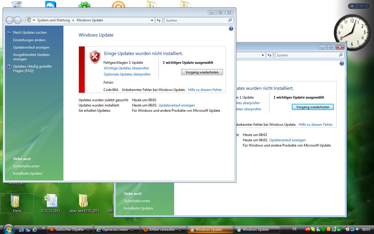 Открой Computerverwaltung, а там в Dienste посмотри, стоит у тебе автоматишь Windows Update?