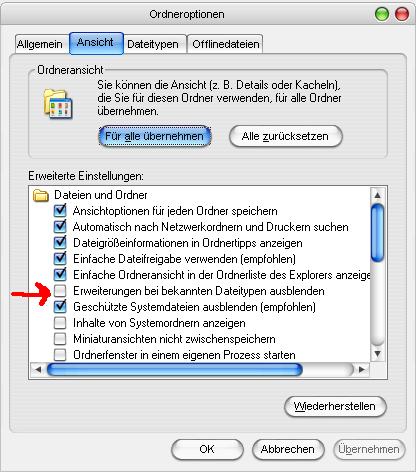 в таких случаях нужно обычно подробно написать: Start>Einstellungen>Ordneroptionen>Ansicht потом посмотреть на фото, убрать галочку и нажать ОК.