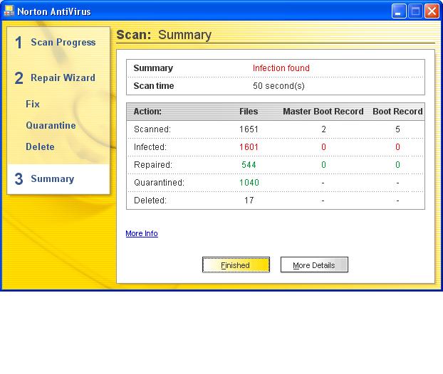 Нортон 2003, поставил и обновил сегодня, нашёл 1601