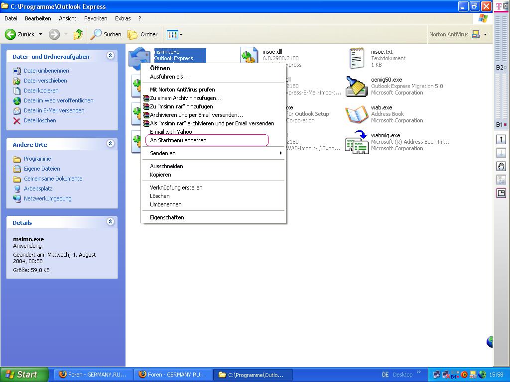 Когда нажимаю Start и на Konwert , чтоб открыть почту, то вместа Outlook Express показывает Internetoptionen, а почта не открывается. Символ как удалить нашёл, а как его теперь назад и чёб работал?