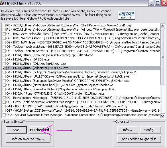 Böse Dieser Eintrag sollte unbedingt mit HijackThis gefixt werden! Dieser Eintrag sollte unbedingt mit HijackThis gefixt werden поставь галку и нажми сюда. а тoolbar- ы посмотри в зофтваре. может чего нового увидешь