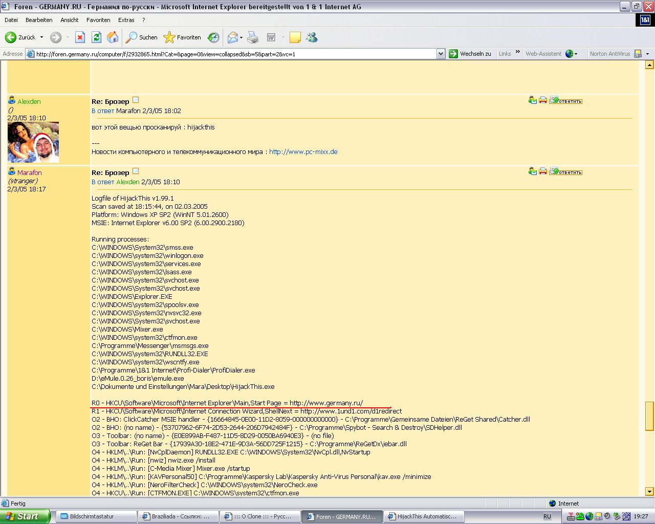C:\Dokumente und Einstellungen\Mara\Desktop\HijackThis.exe