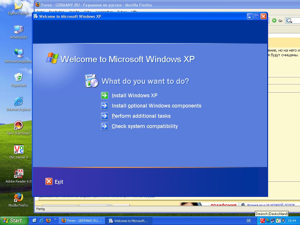 Если я правильно понимаю ситуацию, то второй раз я устанавливаю уже при запущенном WinXP. Потом вставляю диск с WinXP. Диск запустится и я ему даю добрj на установку, в процессе установки создаю новый диск (только какой? Primäre Partition или логический?