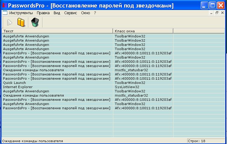 в настройках поменяй на русский язык, потом из меню файл запусти "распознать пароль по звездочкам" потом нажми треугольник в левом верхнем углу в смотри что будет происходить!