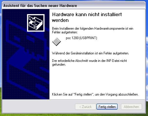 Иногда у XP-шки летит Driver Data base. Проверить можно просто, сказать новый принтер, не искать, самому выбрать, и если он не одной модели не покажет, то База данных полетела. Можно показать C:\Windows\inf или вложить этот путь в Path, но это уже сопли. Я 3 нотбука с этой ошибкой заново инсталировал. Только это помогло. С этой ошибкой комп переста╦т вообще драйверы находить.