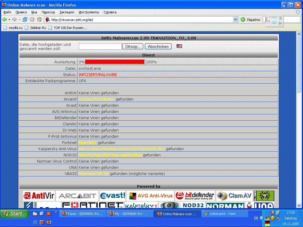 Зайди сюда: http://virusscan.jotti.org/de/ Нажми на "durchsuchen" найди файл