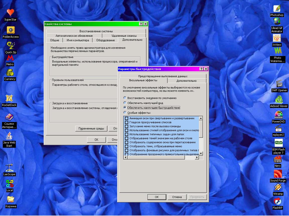 вот один из способов--ставишь "наибольшее быстродействие", и в свойствах экрана выставляешь классический Рабочий стол