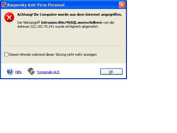 Bei Kaspersky kannst du die überflüssigen Meldungen unter Einstellungen für Echtzeitschutz - Anpassen der Schutzeinstellungen - Schutz vor Netzangriffen nicht aktiviren ausschalten.