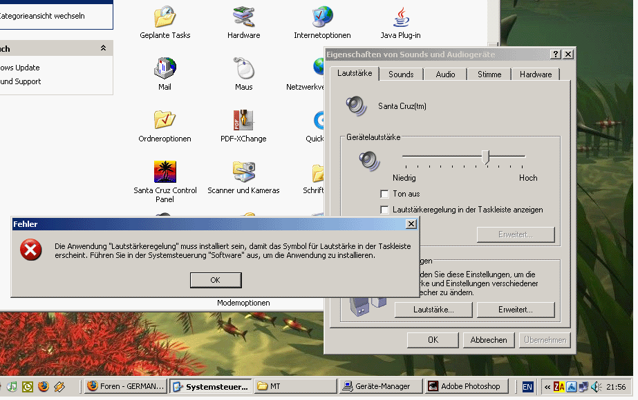 А звука, значит, тоже нет. Музыка проигрывается плейерами, а идет какой-то гулс со спикеров. Сами виндоуские звуки тоже "пищат".