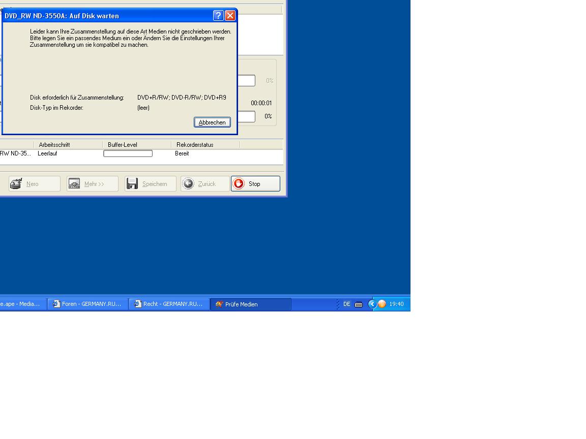 Неро Експресс просит другую болванку или поменят настройки бреннера