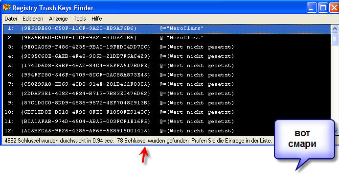 Дело в том что та прога которую ты дала нашла 78 ключей но там непонятно что к чему ! Не могу же я все удалить.