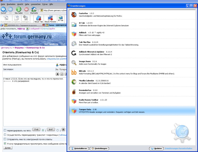 А вот насч╦т основного вопроса не понял: установить ли мне отдельно фокса 1.5 и отдельно Mozilla Thunderbird или поставить сразу SeaMonkey 1.0.4