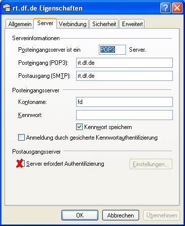 Попробуйте так : outlook express-Extras- Konten-Eigenschaften- Server -"Server erfordert authentifizierung"(поставить галочку)-Einstellungen von postausganserver-Поставить точку на "Anmeldung mit Kontoname und Kennwort"-ОК.