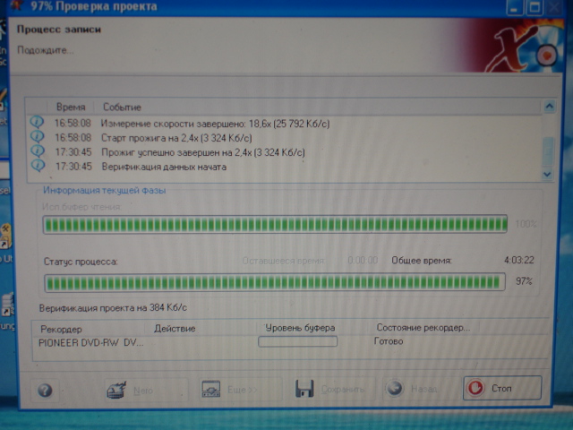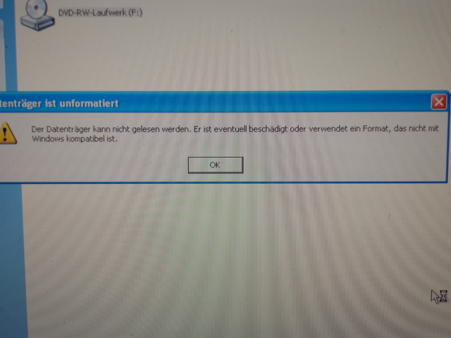 Привет всем форумчанам.Нуждаюсь в помощи спецов.Мой бреннер перестал бреновать DVD+-R.При создании ДВД с данными через НЕРО процесс прожига протекает нормально,но ферификация данных длится очень долго и как правило Диск получается не читаемый.Компьютер пишет,что Виндовс не поддерживает этого формата.Перед прожигом,НЕРО пишет следующее "Вы готовы записать многосессионый одноразовый ДВД диск.Сессия 2 и более будут нечитаемы на некоторых приводах ДВД-РОМ и операционных системах до Виндовс ХР.И дальше предлагает --записать мульттисессию всеравно или записать без мультисессии ну и отменить".При любом раскладе ничего не получается.ДВД проигрыватели также не видят эти диски.Повторю еще раз речь идет о DVD+R.DVD+RW бренуются аж бегом.Бреную в основном кино,сериалы с фестплаты.Диски брал с трех разных источников результат одинаковый.Betriebssystem XP. Бреннер еще не прочищал.Спасибо за любой совет.