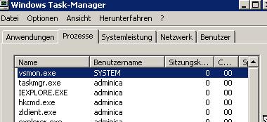 нажми одновременно комбинацию клавиш: Strg+Alt+Entf (в английском варианте: Ctrl+Alt+Delete) и там вторая закладка Prozesse.