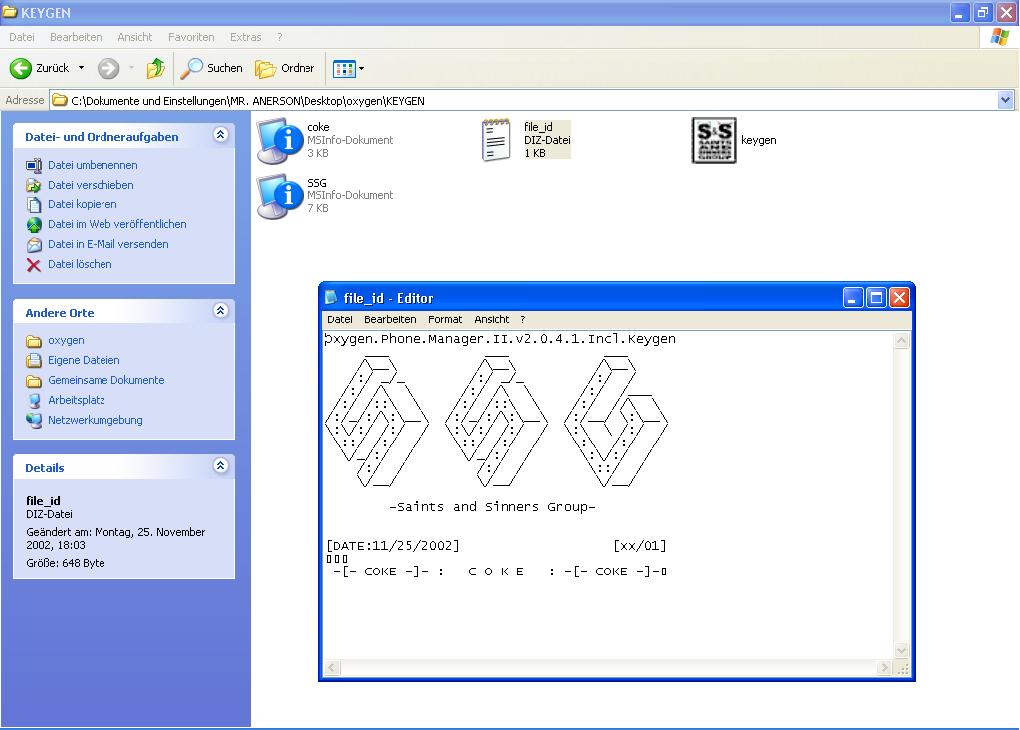 net tam takih. V papke ot programmi - Resdme = opisanie programmi. V Papke Keygen sm. kartunku. Infofile otkrit. A bez Readme nelzja?