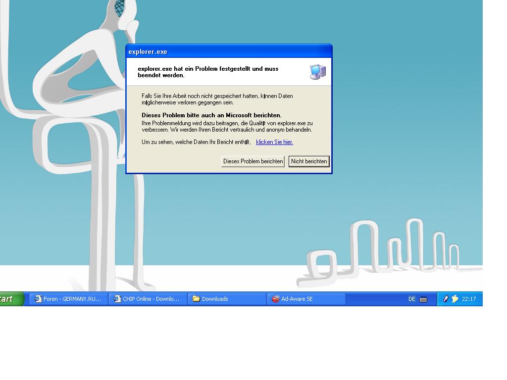 если жму nicht berichten комп как бы коротко перегружается и окрытая папка пропадает