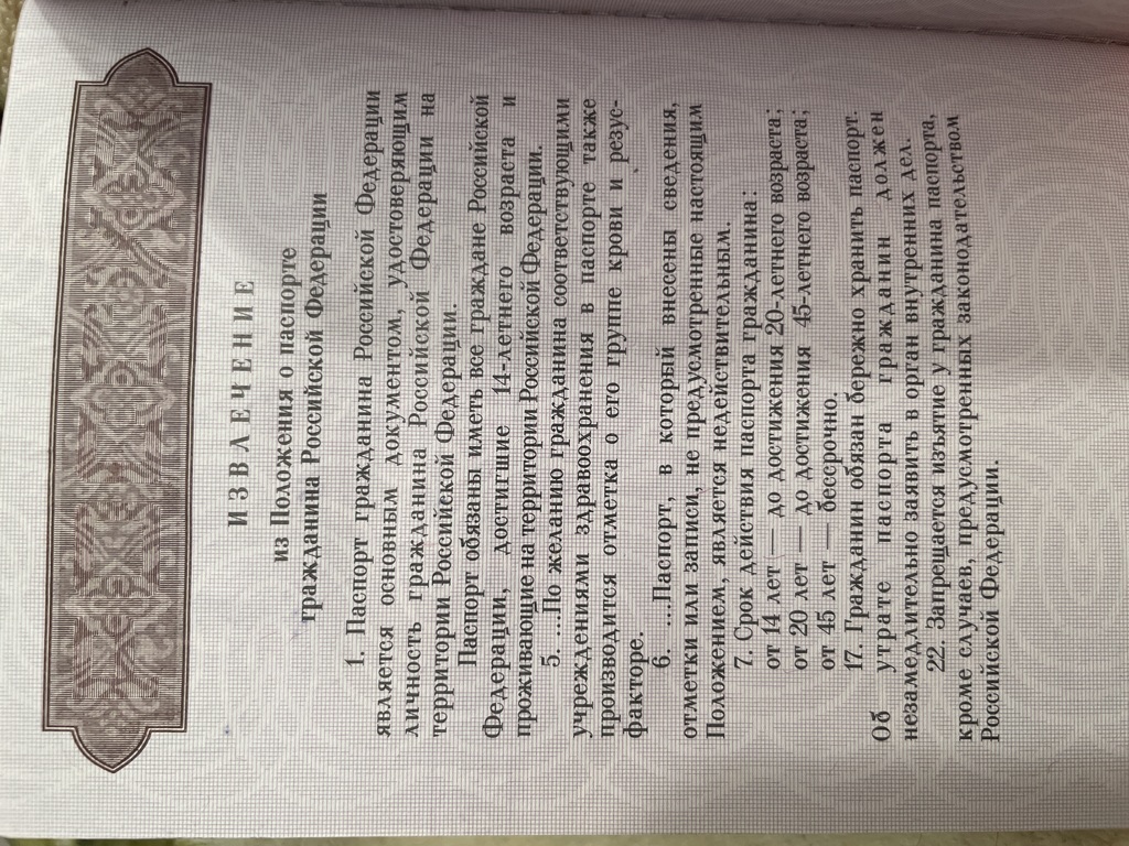 Сейчас мне 42, если я правильно понимаю, если бы я внутренний паспорт получила после 20, то он был бы еще действительный до моих 45.