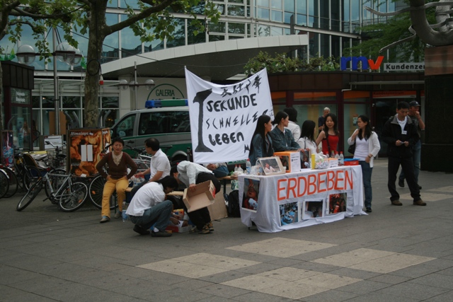 Ниже фото, но там ещё на соседней улице был такой же стол, где не деньги собирали, а протестовали против олимпиады в Китае.