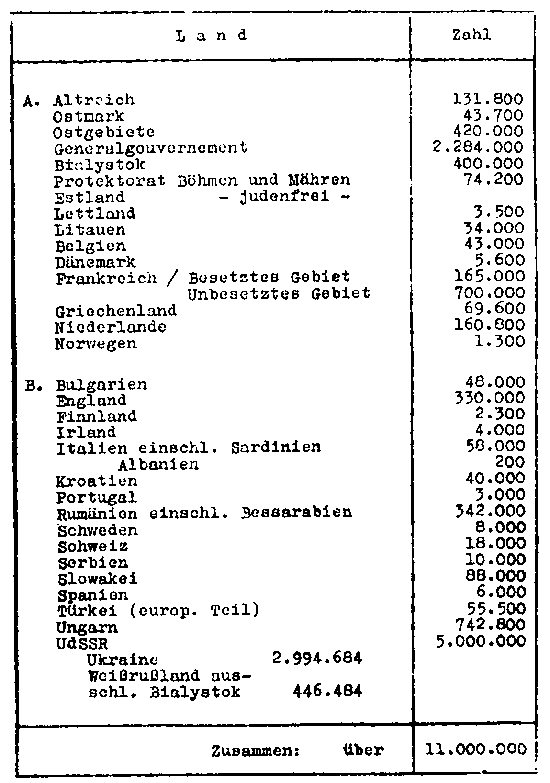 Из прочитанного протокола можно заключить, что истинной целью "окончательного решения еврейского вопроса" ставилось выселение евреев за пределы "ареала"
