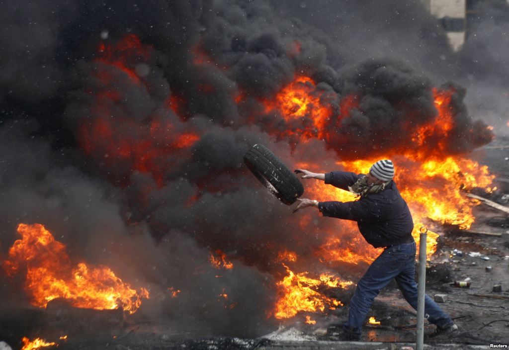 «В связи с тем, что режим Януковича прибегнул к вооруженному насилию против участников мирных протестов, призываем украинцев обращаться в мобилизационные пункты и соглашаться в отряды самообороны на местах и отправляться в столицу для защиты своих конституционных прав»