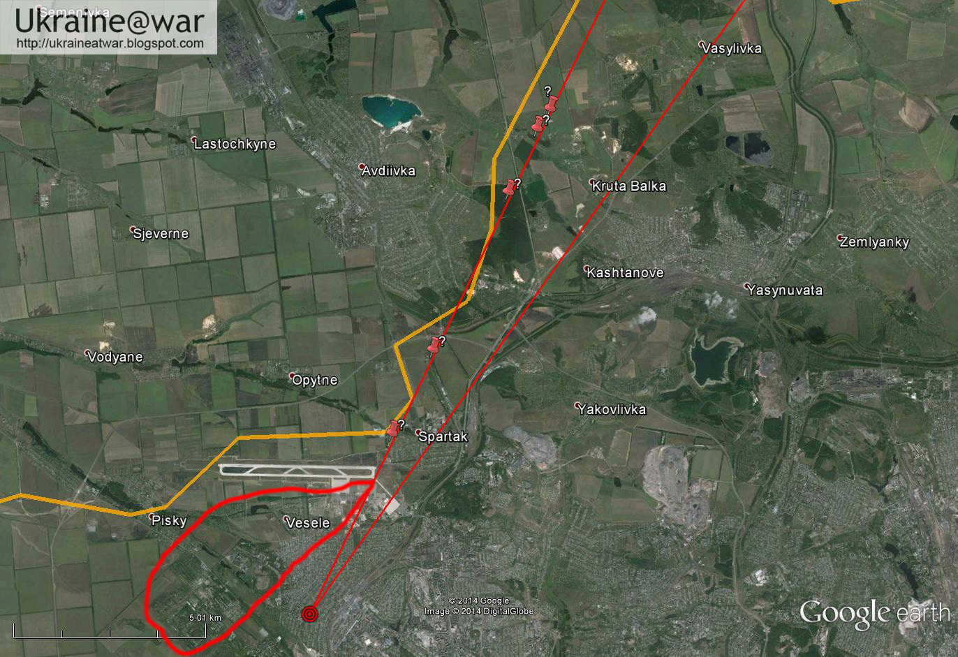 Авдеевка - восточнее аэропорта, аэропорт строго на севере от площадки. Значит ни с самого аэропорта, ни тем более с Авдеевки по версии ОБСЕ стрелять не могли. И поэтому ни Гнатюку, ни ОБСЕ с каким-то там Келиным, который школу с детсадом путает, верить нельзя.