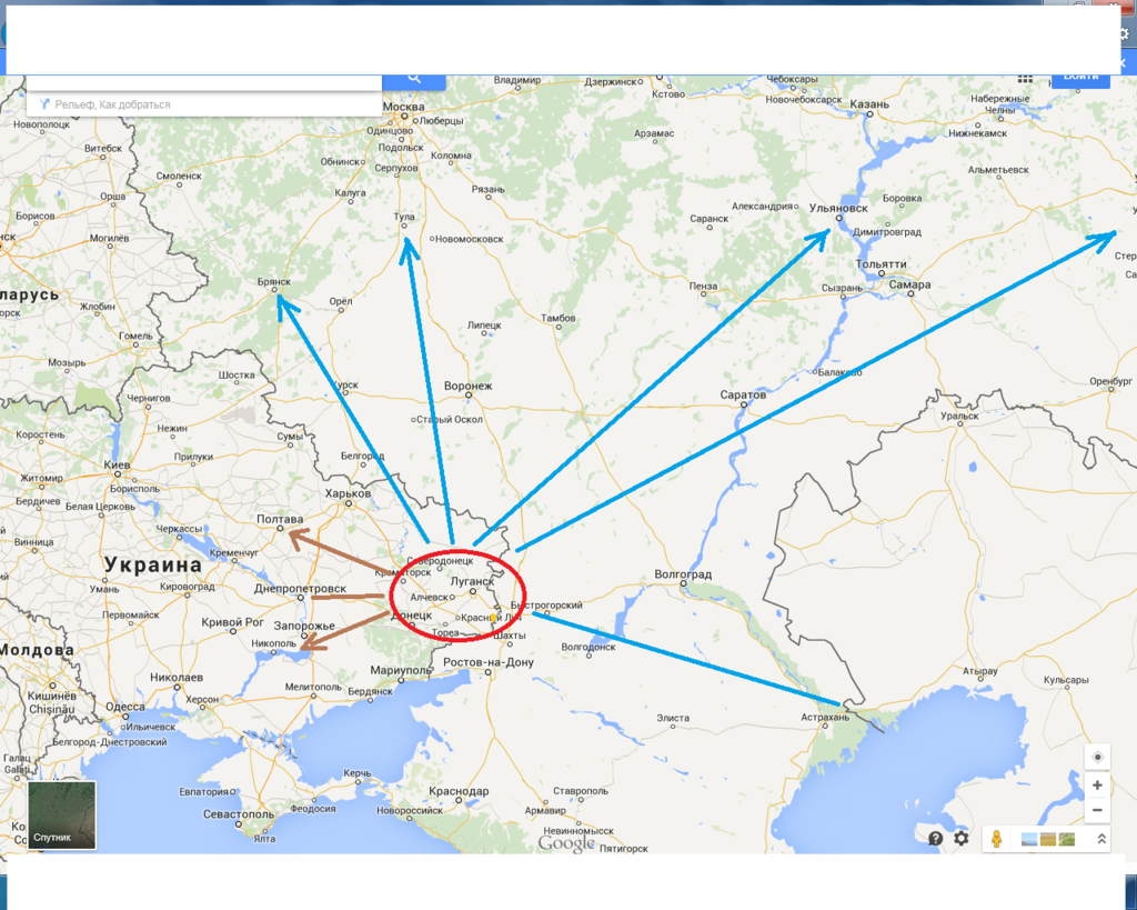 Да по географической карте - переезд беженцам в Днепропетровск ,Запорожье и т.д.