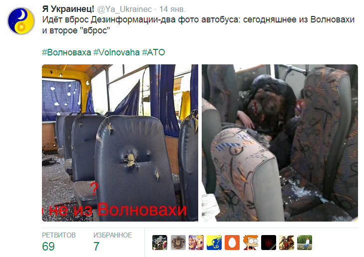 ну, это из той же серии , что и фейковое фото из укр СМИ полугодичной давности автобуса, сиденья которого пробиты осколками