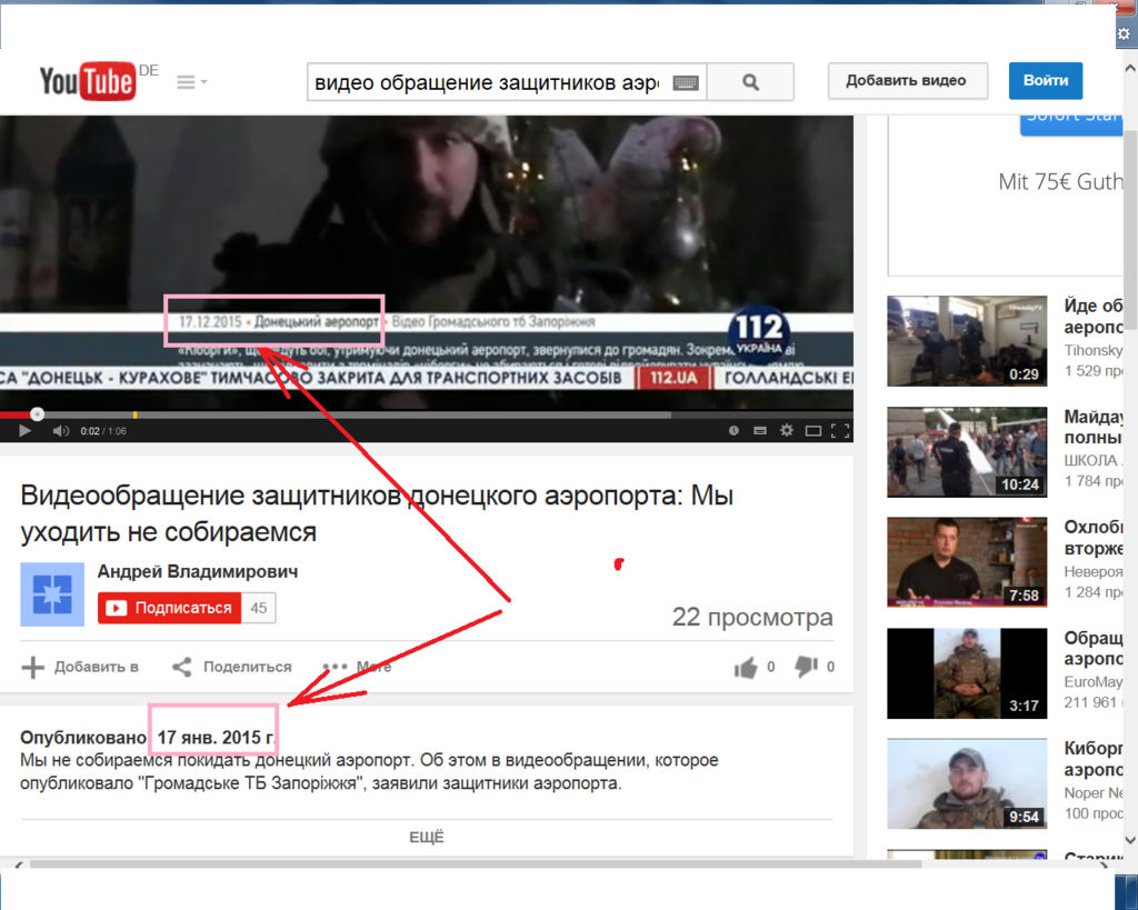 сравните дату публикации видео в ТВ канала 112УА идет 17.01.15 , в "бегущей строке" 17.12.15