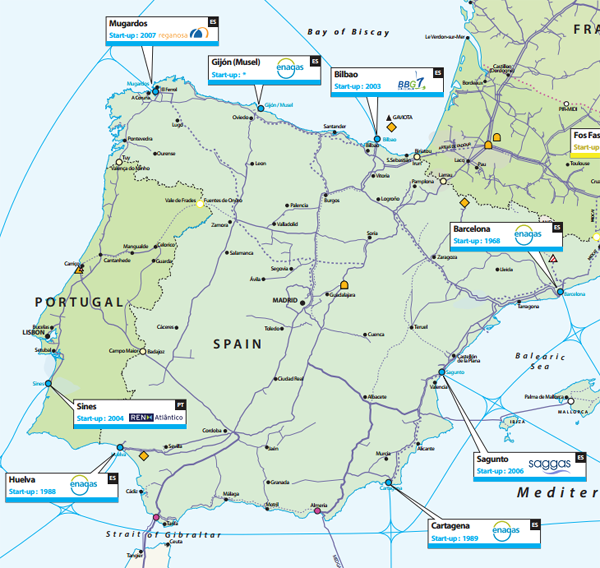 В Испании терминалы давно построены, их 7 штук, действующих 6, и все они работают и принимают сжиженый газ со всего света, во основном с Африки, Перу, Норвегии и стран Персодского залива. Страна независит от какого-то одного поставщика, и испанцы в этом очень flexibel. Не будет им кто-то газ поставлять, будут закупать в Америке или Китае.