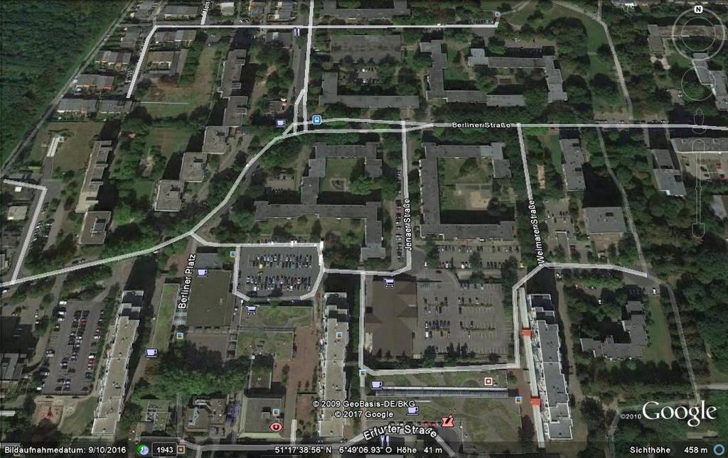 Вот тут на небольшом пространстве 3 школы и , несколько магазинов типа Альди , НЕТТО и куча маленьких включая турецкие , русские , польские , в полукилометре большой Реал и ещё бОльший Рацио 5 Аптек ,Эртцте хаус , не считая нескольких праксисовВ пределах снимка 10 булочных некторые со столиками для еды и пит