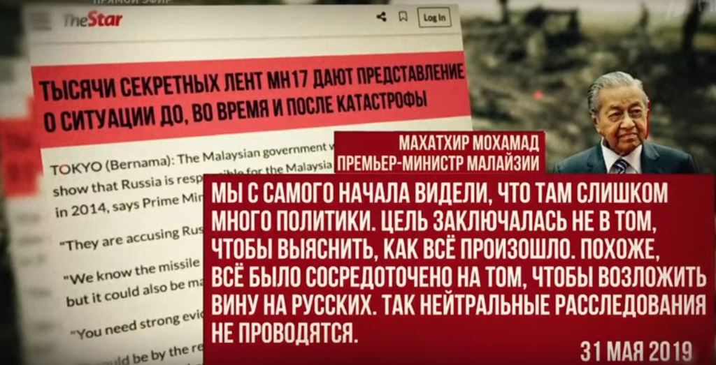 Один они привели между Сергеем Дубинским (Нач СВР ДНР 2014) и собеседником, он об этом Боинге и не знал ничего. И это нач.разведки и не знал? СБУ якобы записало этот разговор, но это лишь доказывает, что это не ДНР. Но к участию расследования ни Малайзию, ни Россию не допустили. Это был с самого начала спланированный политический акт. Премьер Министр Малайзии это подтвердил в 2019 году. Даже есть от него доки.