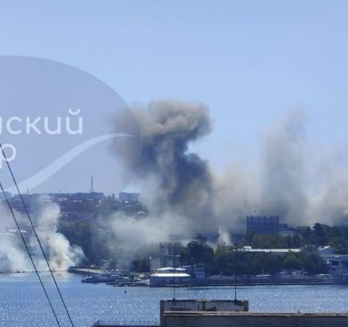 Это подтвердил лично подконтрольный РФ глава Севастополя Развожаев. В городе виден черный дым со стороны центрального холма. Также слышны сирены машин скорой помощи.
